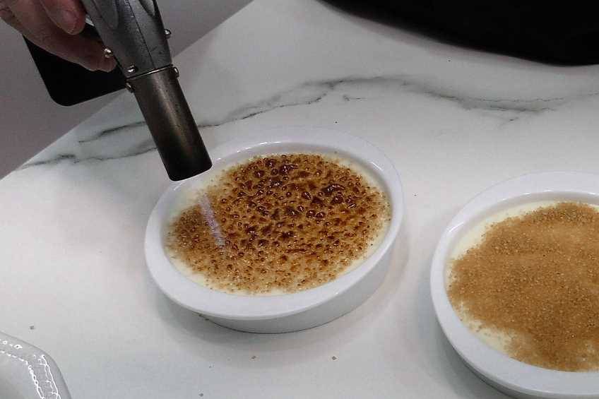 10 minutos antes de agotar el tiempo, echamos el azúcar, anís y mantequilla. Verteremos el arroz en recipientes individuales y cuando se tiemplen, meteremos en la nevera. Para terminar, ponemos azúcar y quemamos con un soplete y ya estaría listo para servir.